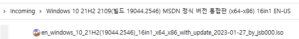 ※ Windows 10, 21H2, 버전 2109 [빌드 19044.2546] MSDN (x64-x86) 16in1 ※