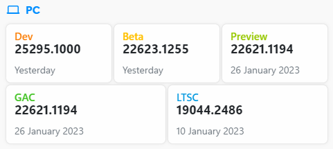 현재 22621 / 22623 빌드가 Beta 채널에서 동시에 배포되고 있습니다.