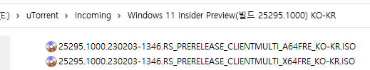 아래 파일은 UUP dump에서 배포하는 스크립트를 이용해서 MS에서 배포하는 파일(ESD, cab파일)로 만든 순수 ISO 파일입니다.