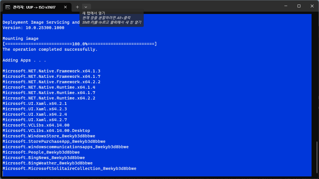 위의 압축파일을 풀어서 "uup_download_windows.cmd" 파일을 실행하면 자동으로 ISO 파일이 만들어집니다 (폴더 이름에 공백이 있으면 안됩니다.)
