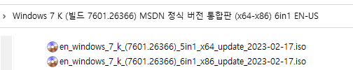 Windows 7 K (빌드 7601.17514) MSDN + KB5022872 (Monthly Rollup : 2023-02-14) = 7601.26366