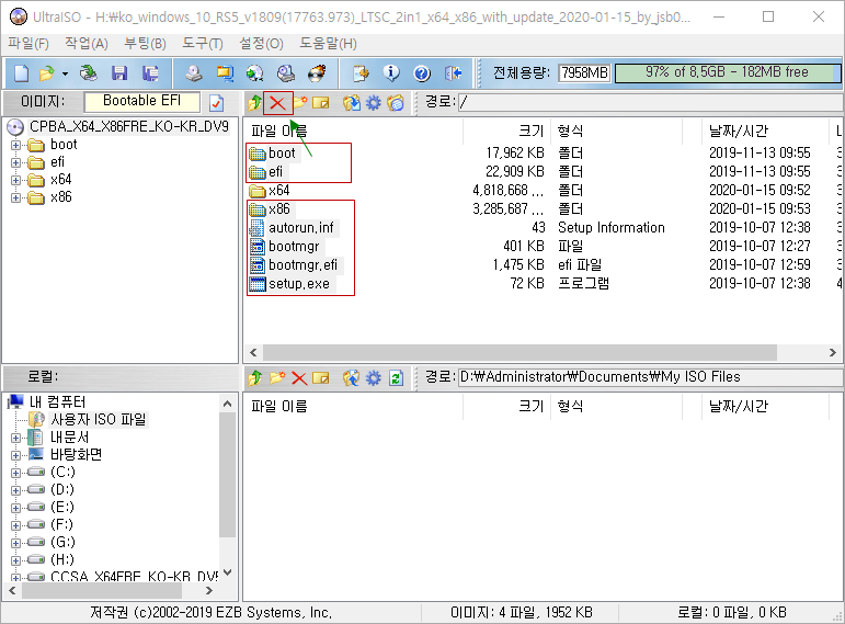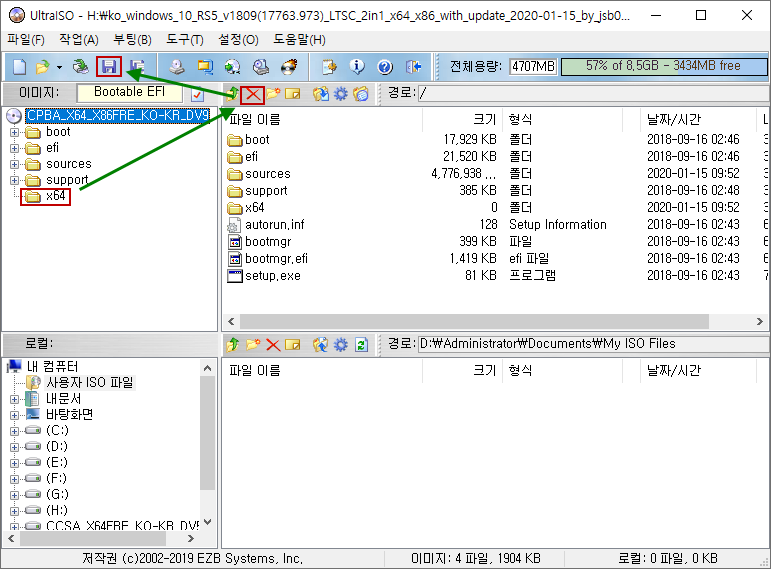 UltraISO 프로그램으로 ISO 파일을 열어서 x86 폴더를 삭제하시고 저장하시면 됩니다.