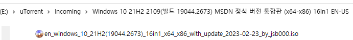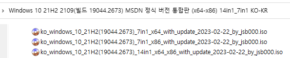 ※ Windows 10, 21H2, 버전 2109 [빌드 19044.2673] MSDN (x64-x86) 16in1 ※