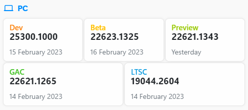 ○ 베타 채널 [Beta] = Windows 11 : 빌드 22621.1325 / 22623.1325 (= 참가자 빌드)