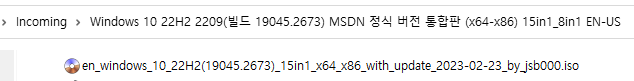 ※ Windows 10, 22H2, 버전 2209 [빌드 19045.2673] MSDN (x64-x86) 15in1 ※