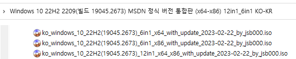 ※ Windows 10, 22H2, 버전 2209 [빌드 19045.2673] MSDN (x64-x86) 12in1 / 6in1 ※