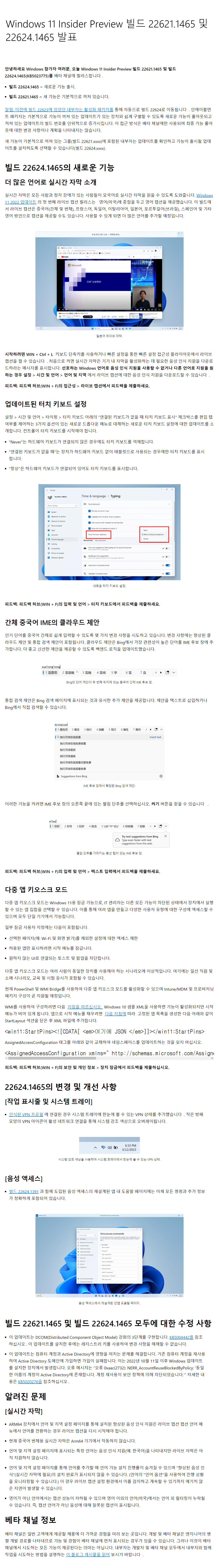 ○ 베타 채널 [Beta] = Windows 11 : 빌드 22621.1465 / 22624.1465 (= 참가자 빌드)