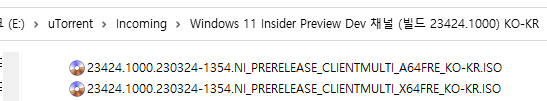 아래 파일은 UUP dump에서 배포하는 스크립트를 이용해서 MS에서 배포하는 파일(ESD, cab파일)로 만든 순수 ISO 파일입니다.