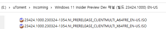 ○ 개발자 채널 [Dev] = Windows 11 : 빌드 23424.1001 (= 참가자 빌드)