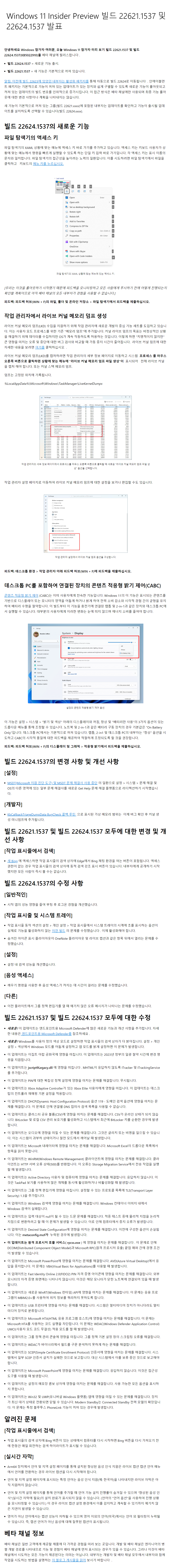 22624.xxx 빌드 : 기능추가가 된 빌드 (추가된 기능 설명은 본문 하단 참조하세요)