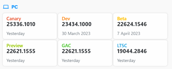 ○ 개발자 채널 [Canary] = Windows 11 : 빌드 25336.1000 (= 참가자 빌드)