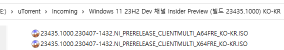 아래 파일은 UUP dump에서 배포하는 스크립트를 이용해서 MS에서 배포하는 파일(ESD, cab파일)로 만든 순수 ISO 파일입니다.
