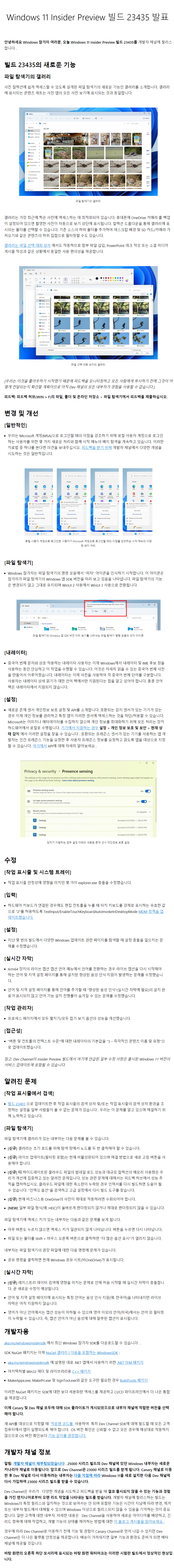이 빌드는 Windows 11 (Version 23H2) 버전을 위한, 개발자(Dev) 채널의 참가자들에게 배포되는 프리뷰(테스트) 빌드입니다.