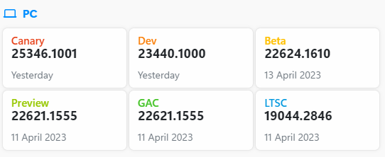 일반 대중에게 출시되기 전에 광범위한 내부자 테스트가 필요한 플랫폼에 대한 다양한 변경 사항이 포함됩니다. 이러한 변경 사항에는 Windows 커널, 새로운 API 등에 대한 주요 변경 사항이 포함됩니다. Canary는 여러 면에서 이전 Dev 채널과 유사합니다. 즉, 제시된 모든 변경 사항이 최종 릴리스에 적용되지는 않습니다.