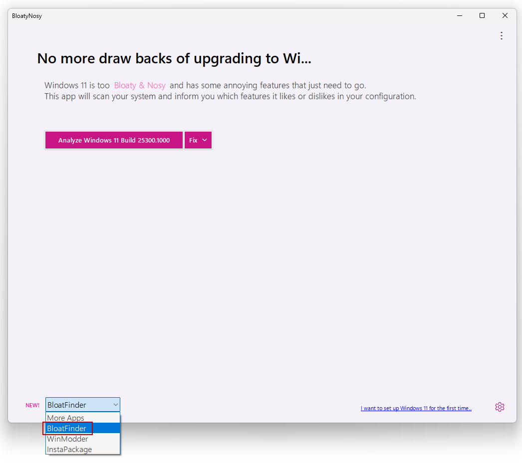 아래 그림처럼 [BloatFinder] 옵션을 선택합니다.