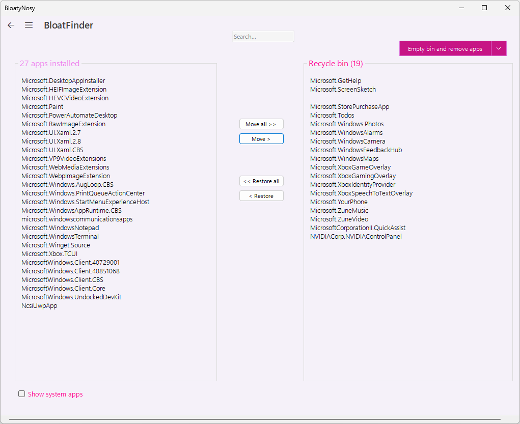 선택후에는 [Empty bin and remove apps] 버튼을 눌러주면 앱이 삭제됩니다.