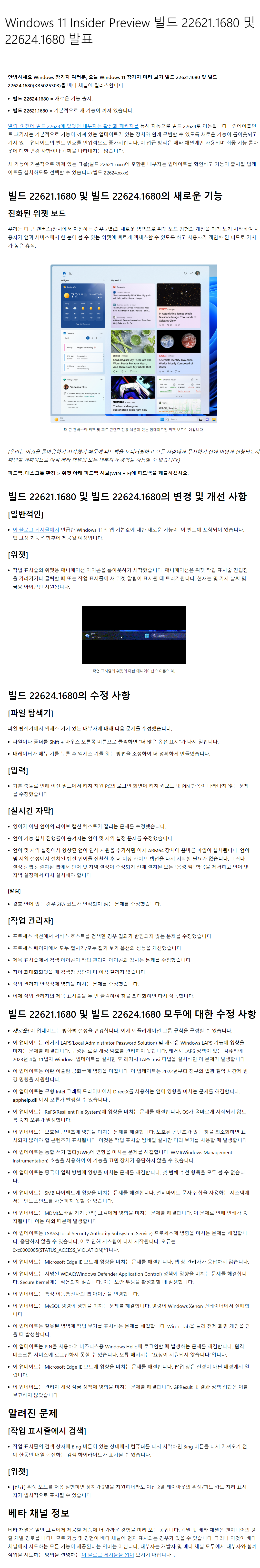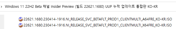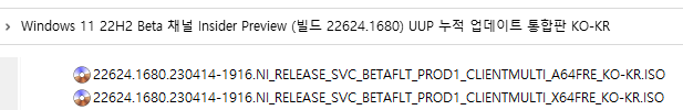 ○ 베타 채널 [Beta] = Windows 11 : 빌드 22621.1680 / 22624.1680 (= 참가자 빌드)