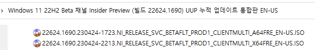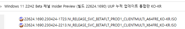 ○ 베타 채널 [Beta] = Windows 11 : 빌드 22621.1690 / 22624.1690 (= 참가자 빌드)