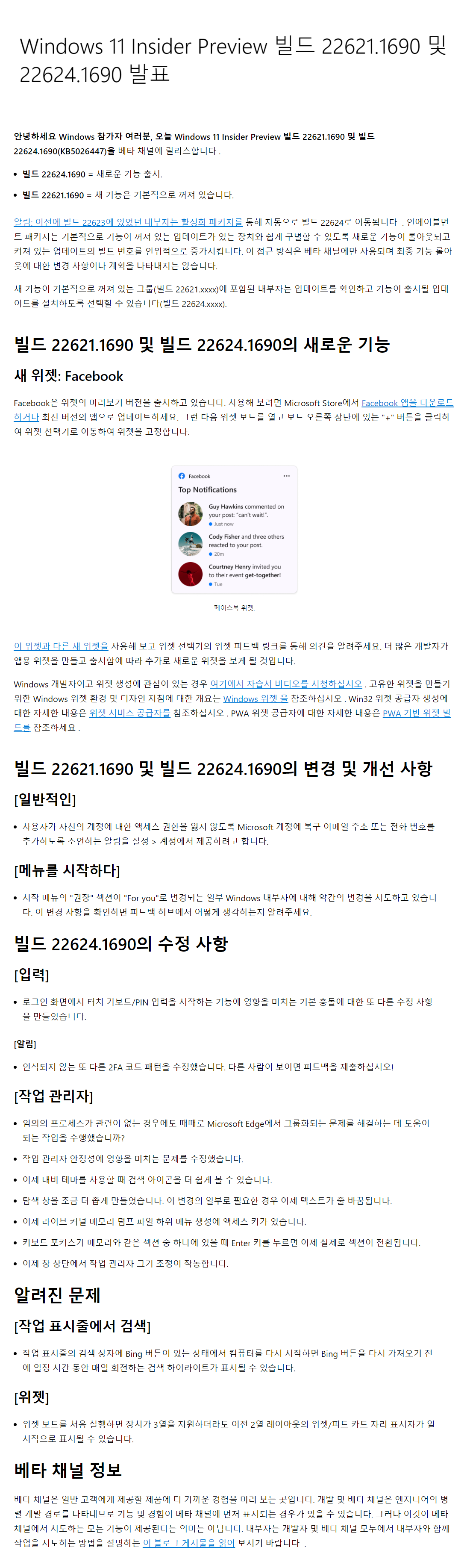 이 업데이트는 인사이드 참가자들에게 테스트 및 피드백 목적으로 배포되는 빌드입니다.