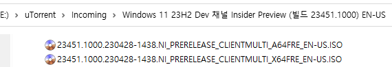 ○ 개발자 채널 [Dev] = Windows 11 : 빌드 23451.1000 (= 참가자 빌드)