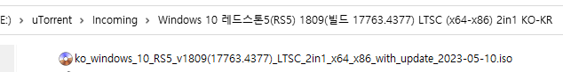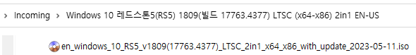 ※ Windows 10, 레드스톤5(RS5) 버전 1809 LTSC (17763.1) + 누적 업데이트 파일(KB5026362) : 17763.x →