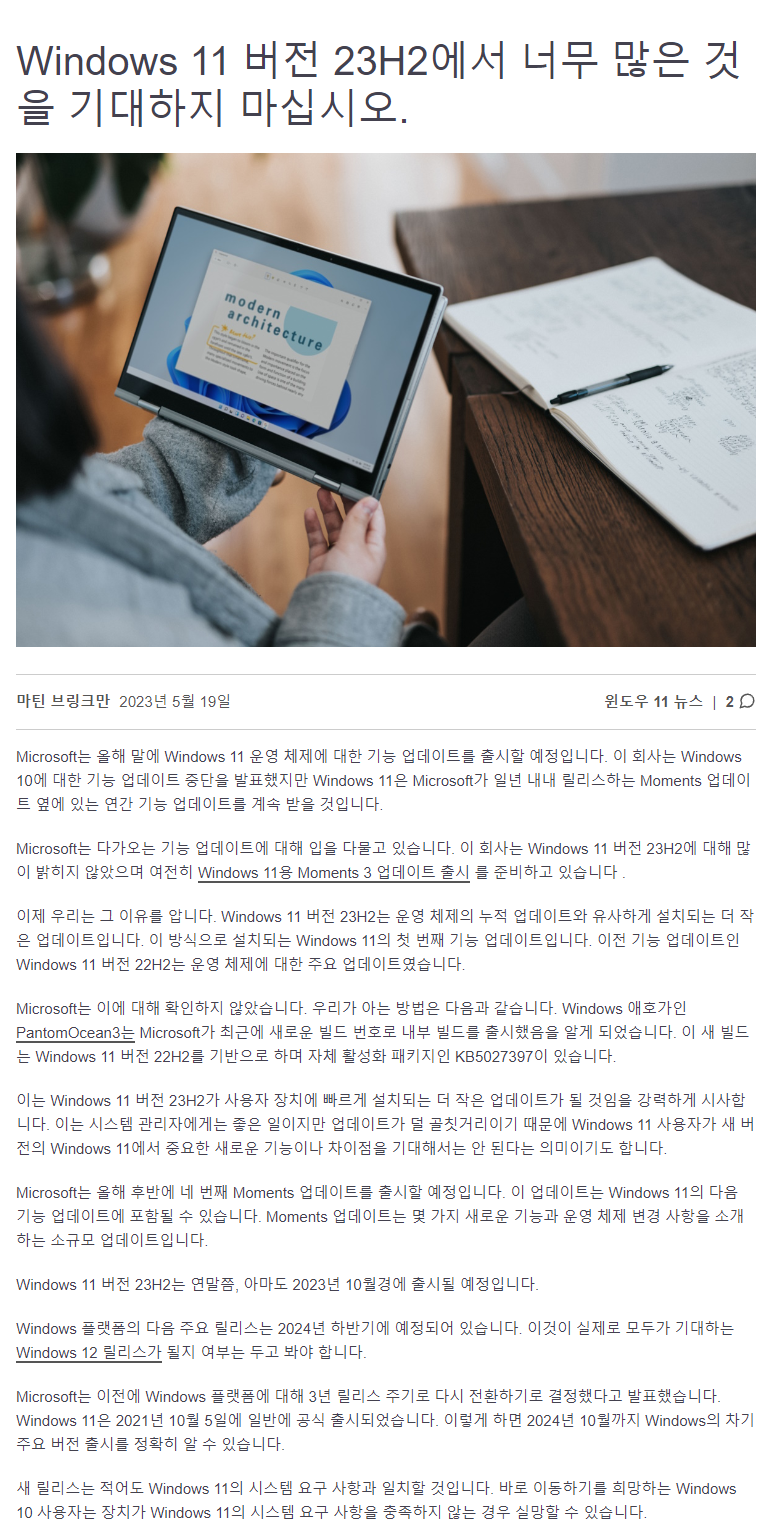 | Windows 11용 Moment 3 업데이트가 5월 24일에 출시됩니다 (2) | 2023.05.24 |