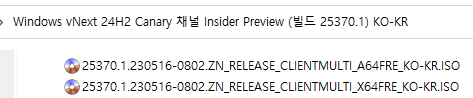 ○ 개발자 채널 [Canary] = Windows 11 : 빌드 25370.1 (= 참가자 빌드)