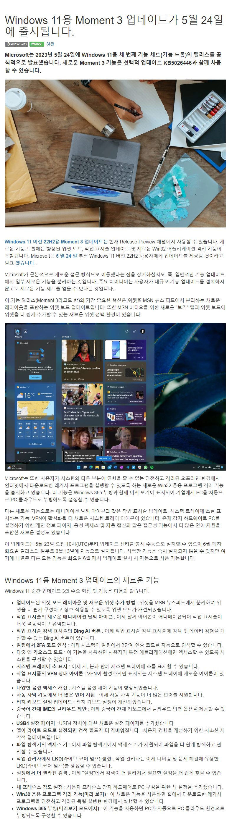 | Windows 11, 22H2용 Moment Update 3는 Release Preview 채널에서 사용할 수 있습니다 (7) | 2023.05.15 |