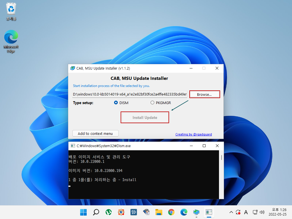 2) [Install Update] 버튼을 눌러서 cab 파일을 설치해주고