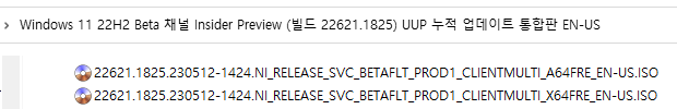 현재 22621 / 22624 빌드가 Beta 채널에서 동시에 배포되고 있습니다.