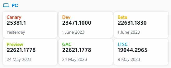 ○ 개발자 채널 [Canary] = Windows 11 : 빌드 25381.1 (= 참가자 빌드)