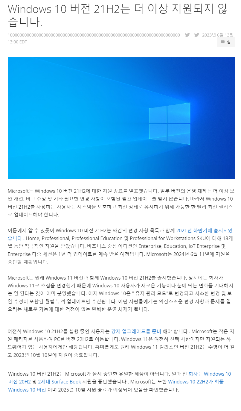 이번달 6월 13일부로 19044에 대한 지원이 끝났습니다.