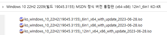 ※ Windows 10, 22H2, 버전 2209 [빌드 19045.3155] MSDN (x64-x86) 12in1 / 6in1 ※