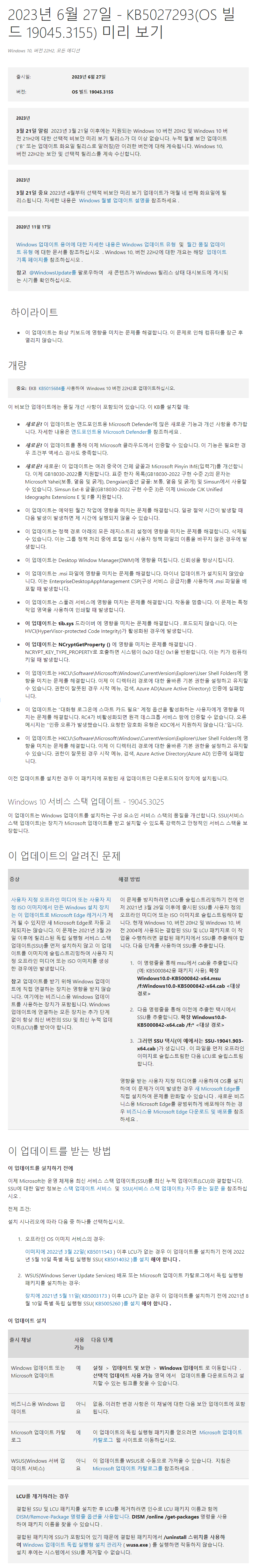 KB5027293 = 누적 업데이트(19045.3155) (Cumulative update : CCU) (2023-06-27)