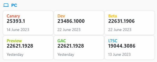 ○ 일반 사용자 채널 = Windows 11 22H2 : 빌드 22621.1928 (= 일반 사용자 빌드)