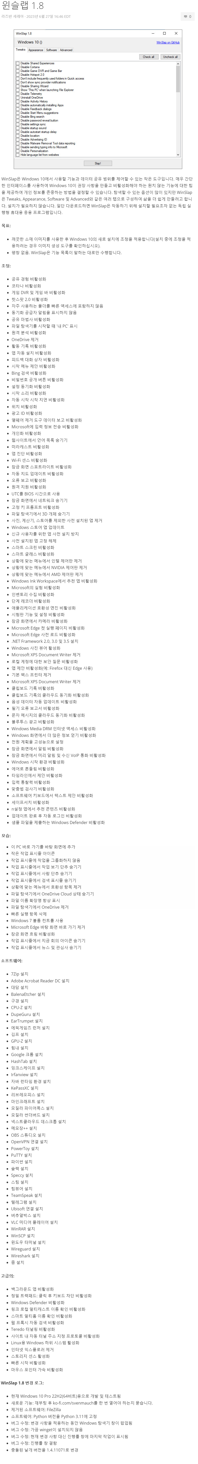 | Windows 10 & 11 최적화 프로그램 (DoNotSpy11 1.2.0.0) (4) | 2023.10.31 |