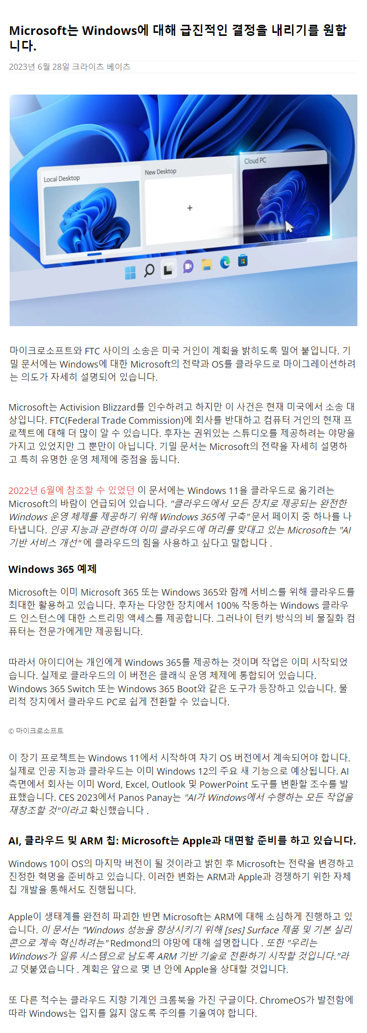 | Microsoft는 Windows를 클라우드로 완전히 이동하려고 합니다 (8) | 2023.06.28 |