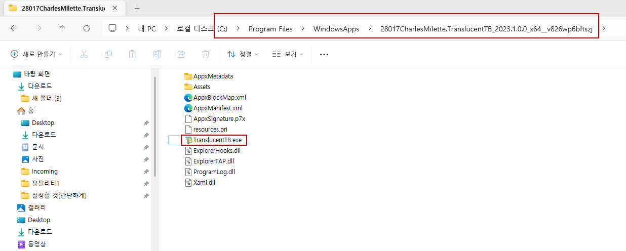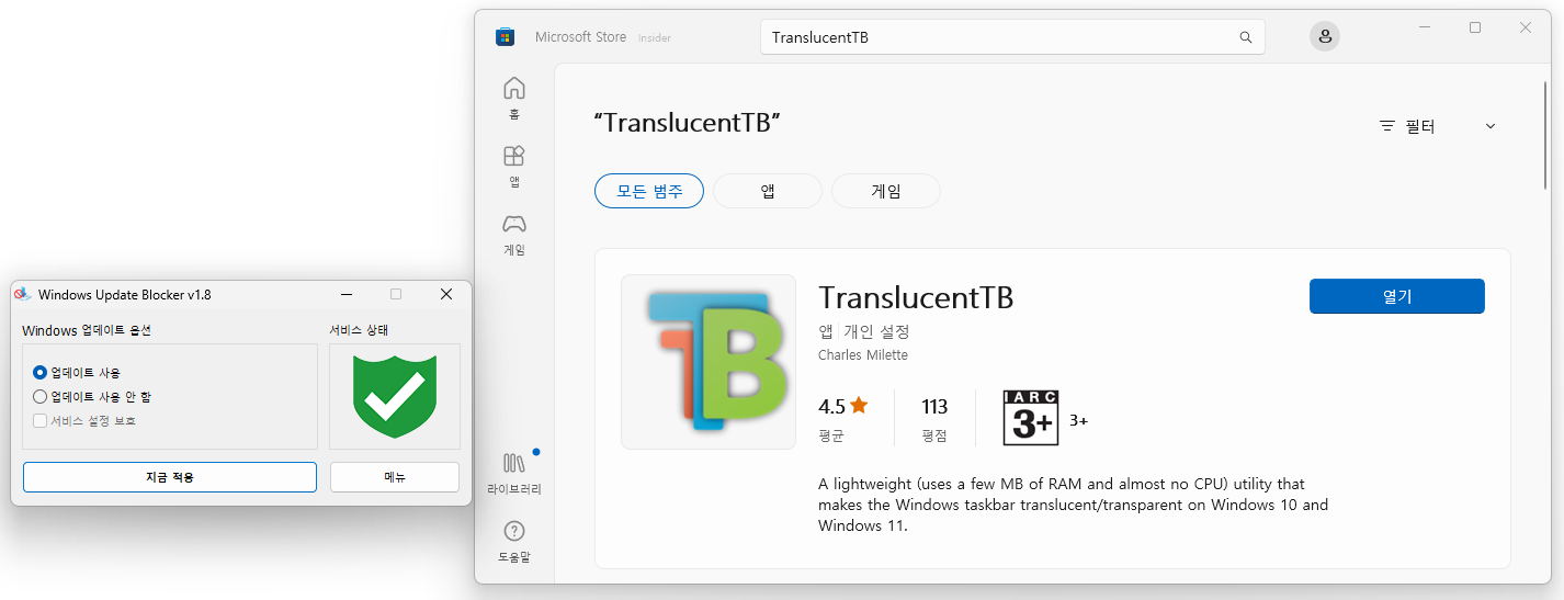 그동안 작동안하던 TranslucentTB 프로그램이 업데이트되어 다시 작동되네요..ㅎㅎ
