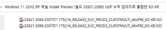 ○ 미리보기 채널 [Release Preview] = Windows 11 : 빌드 22621.2066 (= 참가자 빌드)
