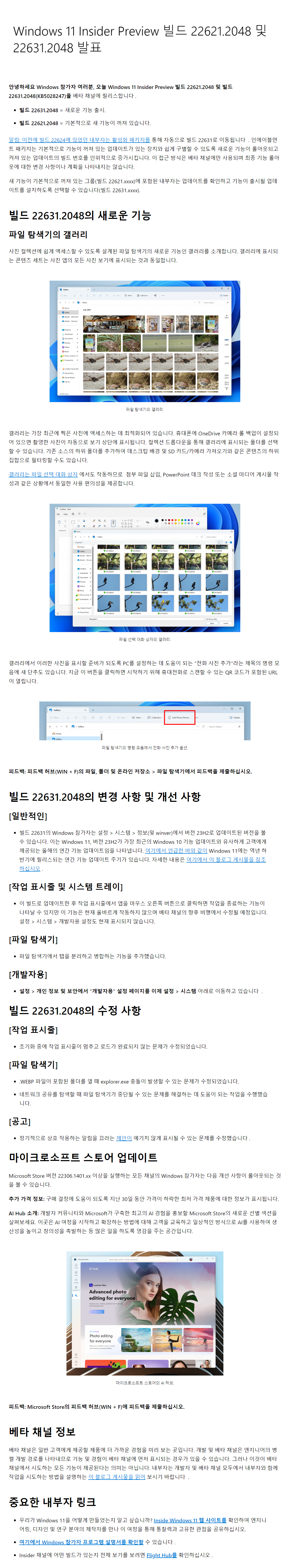 이 업데이트는 인사이드 참가자들에게 테스트 및 피드백 목적으로 배포되는 빌드입니다.