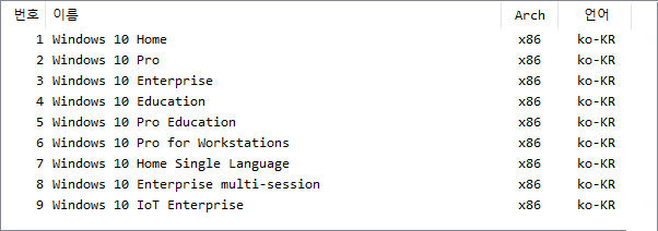 x86 버전에 들어있는 에디션