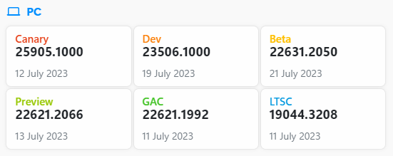 ○ 개발자 채널 [Canary] = Windows 11 : 빌드 25905.1000 (= 참가자 빌드)