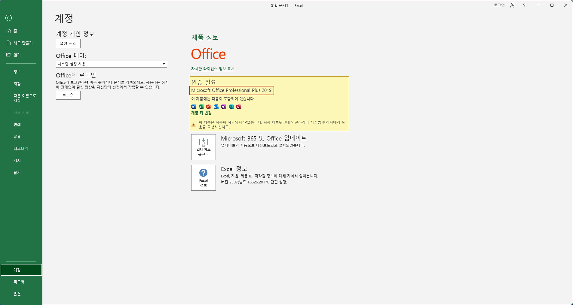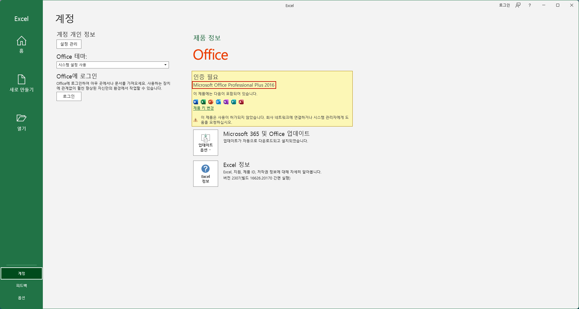 버전이 Office 2016으로 나옵니다.