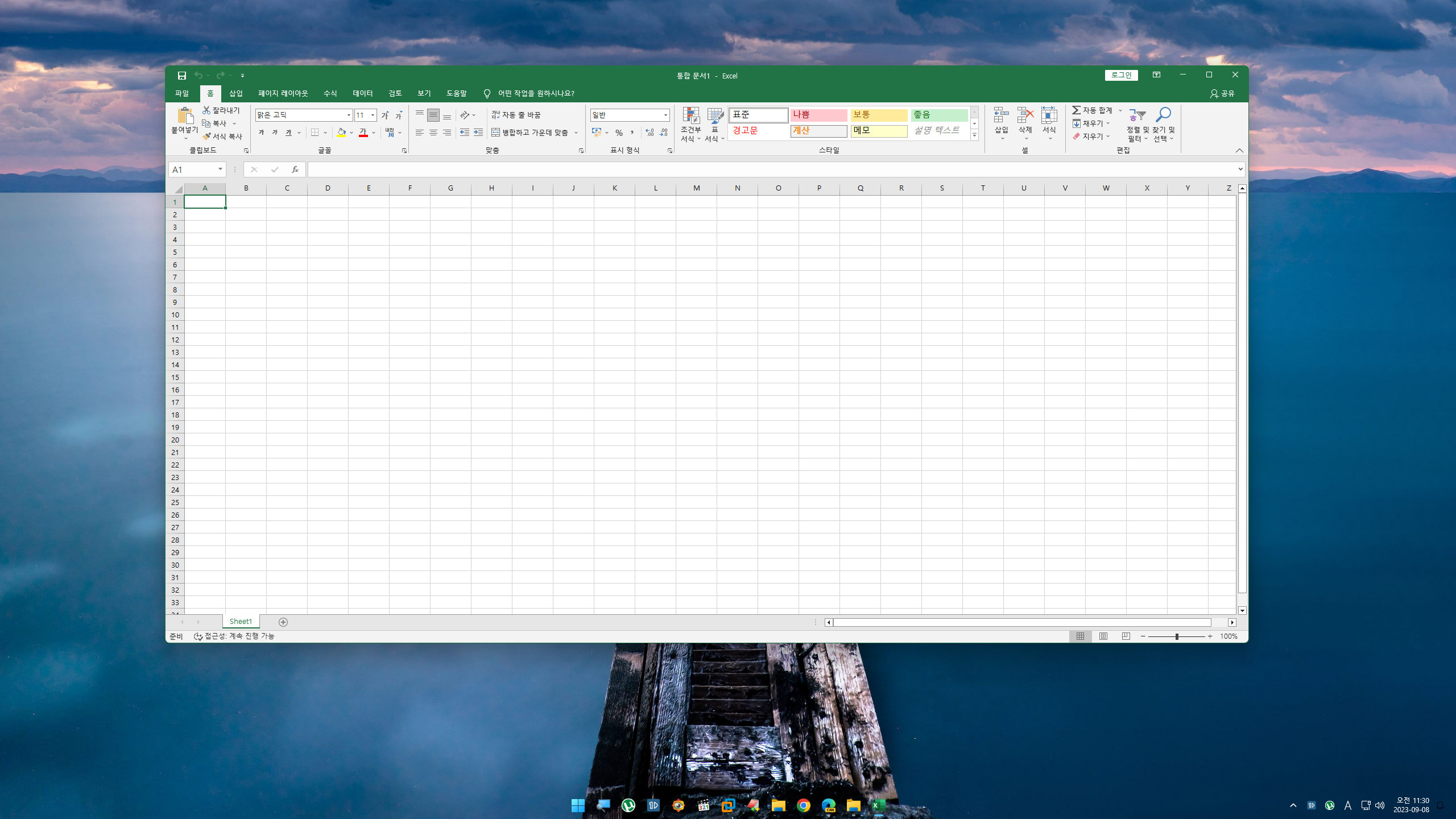 엑셀을 실행해봤습니다.