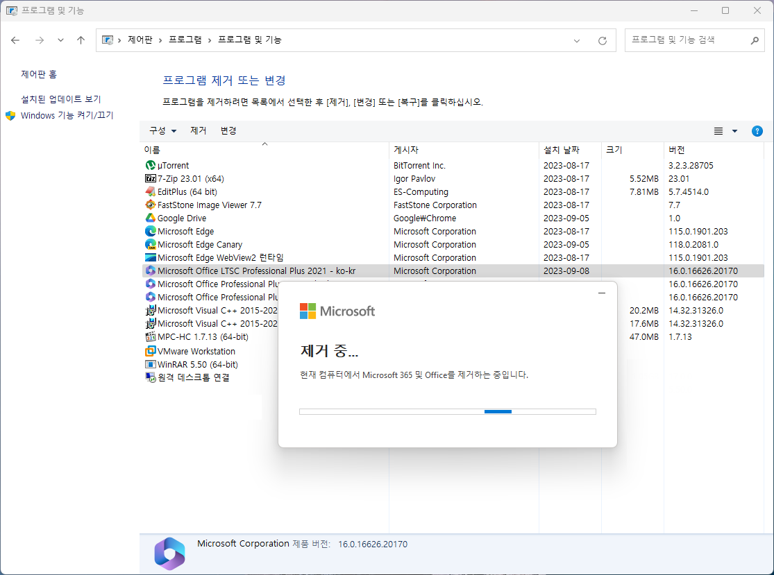 오피스 2021 제거가 완료되었습니다.