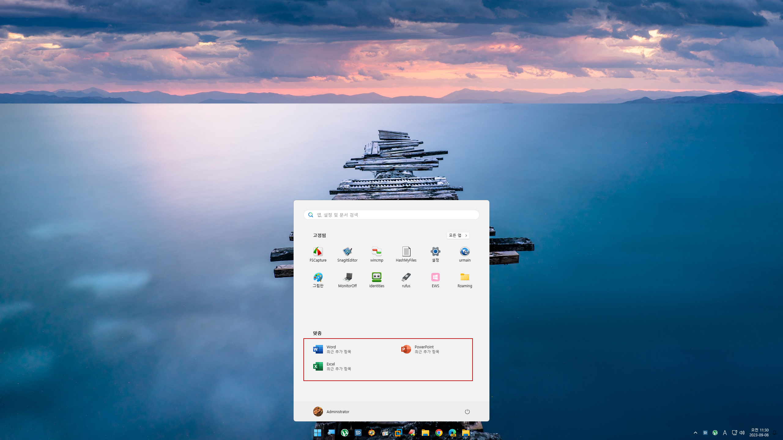 시작 메뉴에 3개의 설치된 단축아이콘이 생겼습니다.