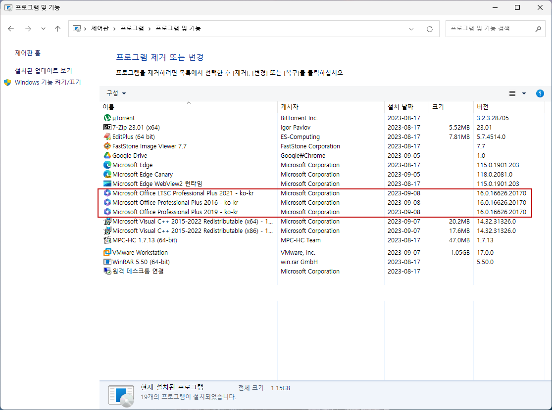 5. 오피스 2019 제거