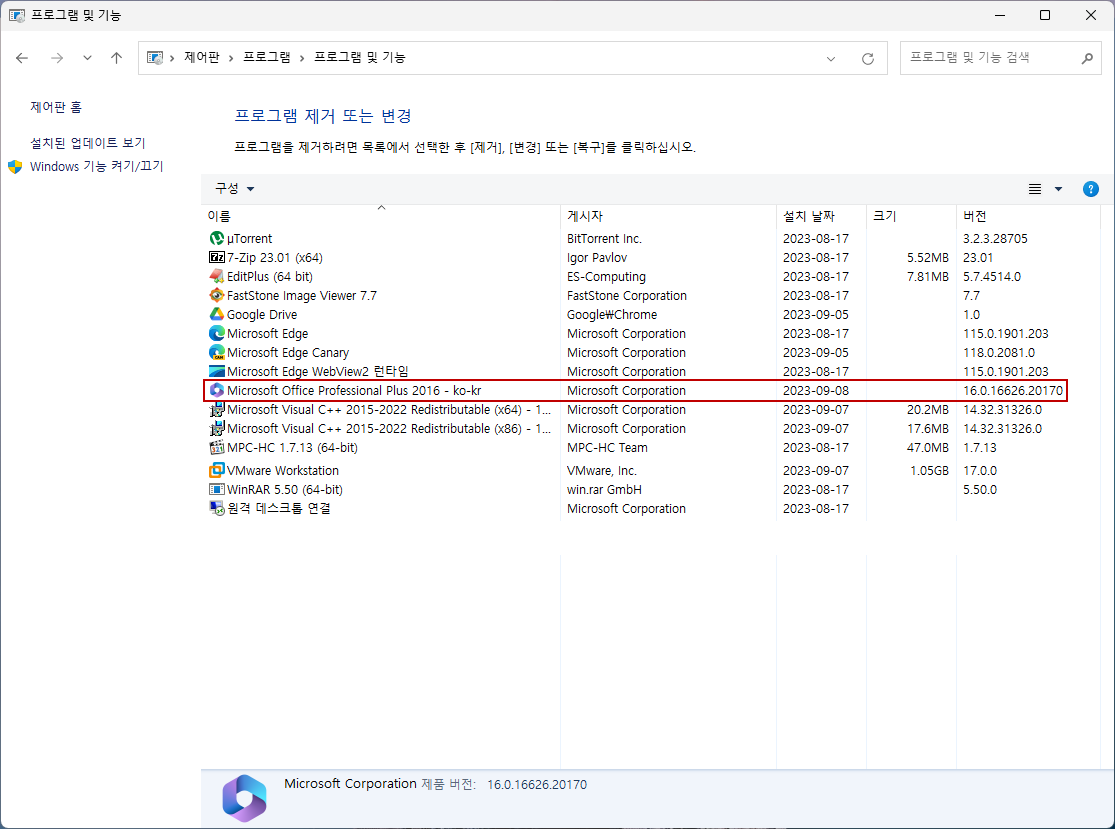 4. 오피스 2021 제거
