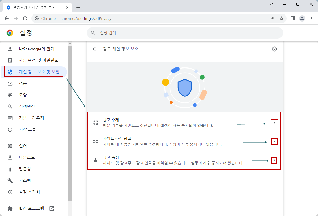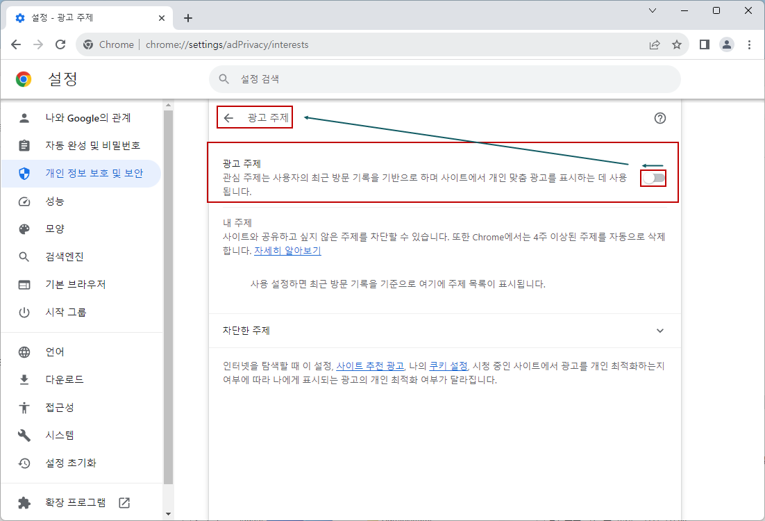 이전 버전에서 없던 [광고 주제] 대화상자가 크롬 처음 시작시 나타납니다.ㅠ