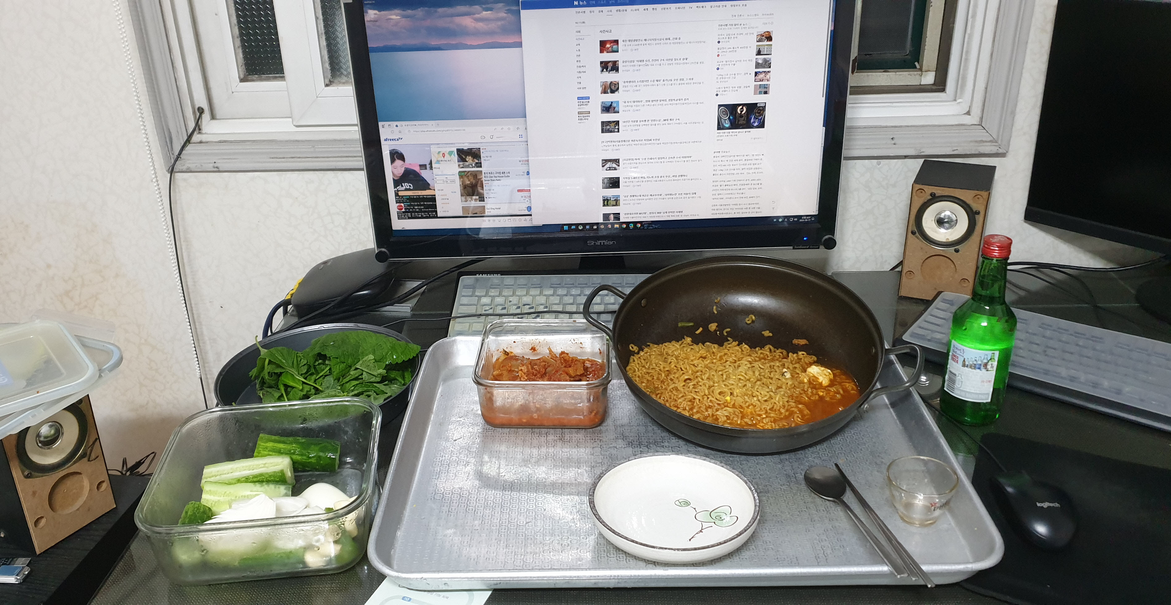 평소에는 처다도 안보던 라면을 정말 오랜만에 끓이고 쏘주를 한병 사왔습니다...ㅎ